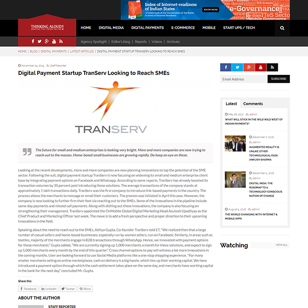 Building TranServ from the ground up has given me an in-depth understanding of what it takes to build a large-scale business and accelerate its growth by forging strategic partnerships. Moreover, developing a leading digital payments platform and overseeing its successful amalgamation into a unique digital lending and payments platform, post acquisition by IndiaBulls, has helped me gain a unique insight on both digital payments and digital lending in the Indian market. Along the way, I learnt some key (life) lessons about what it takes to make it as an entrepreneur in big business.